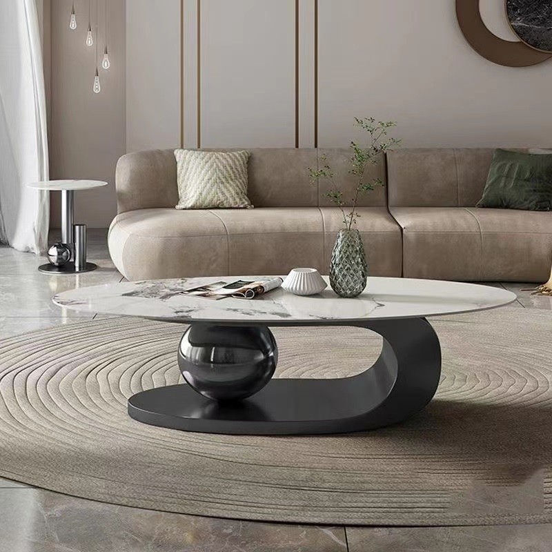 Măsuță de cafea premium cu blat din piatră sinterizată și picior metalic negru