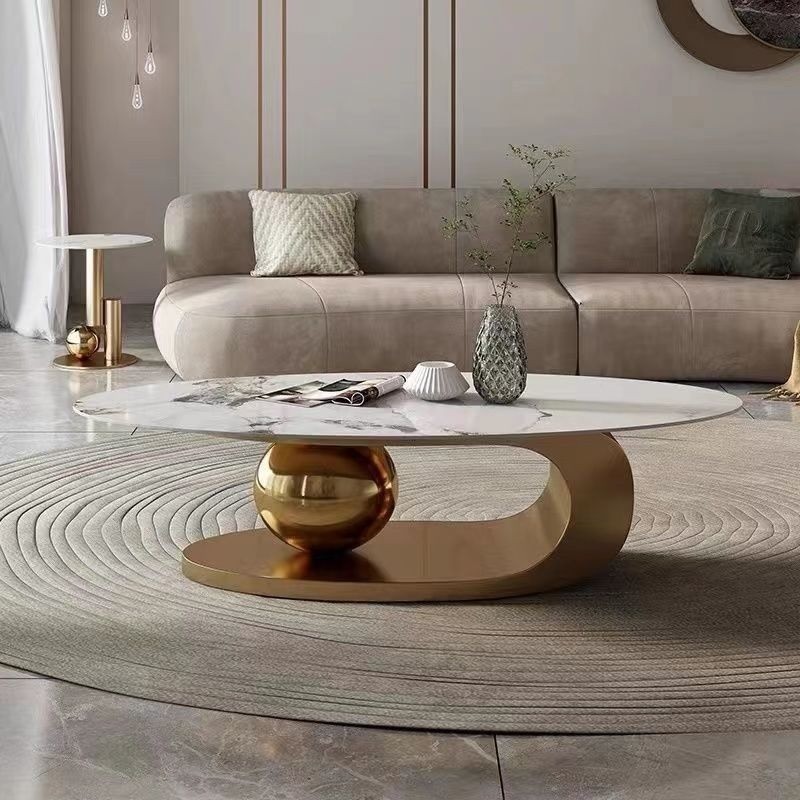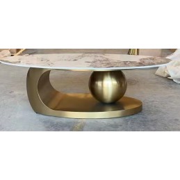 Măsuță de cafea premium cu blat din piatră sinterizată și picior metalic auriu