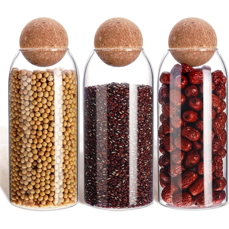 Set 3 borcane din sticlă, 1150 ml, cu capac din plută – elegante, rezistente și ideale pentru depozitarea alimentelor