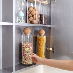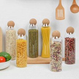 Material: sticlă rezistentă + capac din plută naturală, care asigură o etanșare bună și păstrează prospețimea alimentelor.