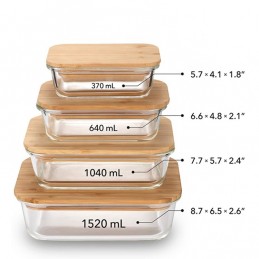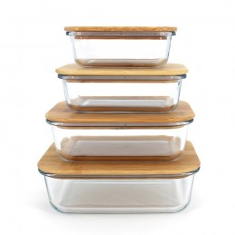 Set de 4 caserole premium din sticlă cu capace din bambus natural
