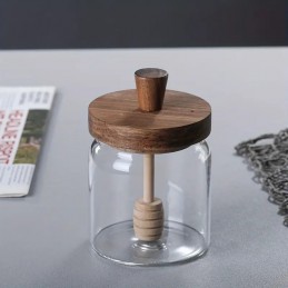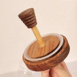 Capacul este prevăzut cu o linguriță specială încorporată, astfel încât să poți turna mierea ușor, fără picături risipite și fără să murdărești masa. Designul modern și natural îl face perfect atât pentru uz zilnic, cât și pentru a fi oferit cadou.