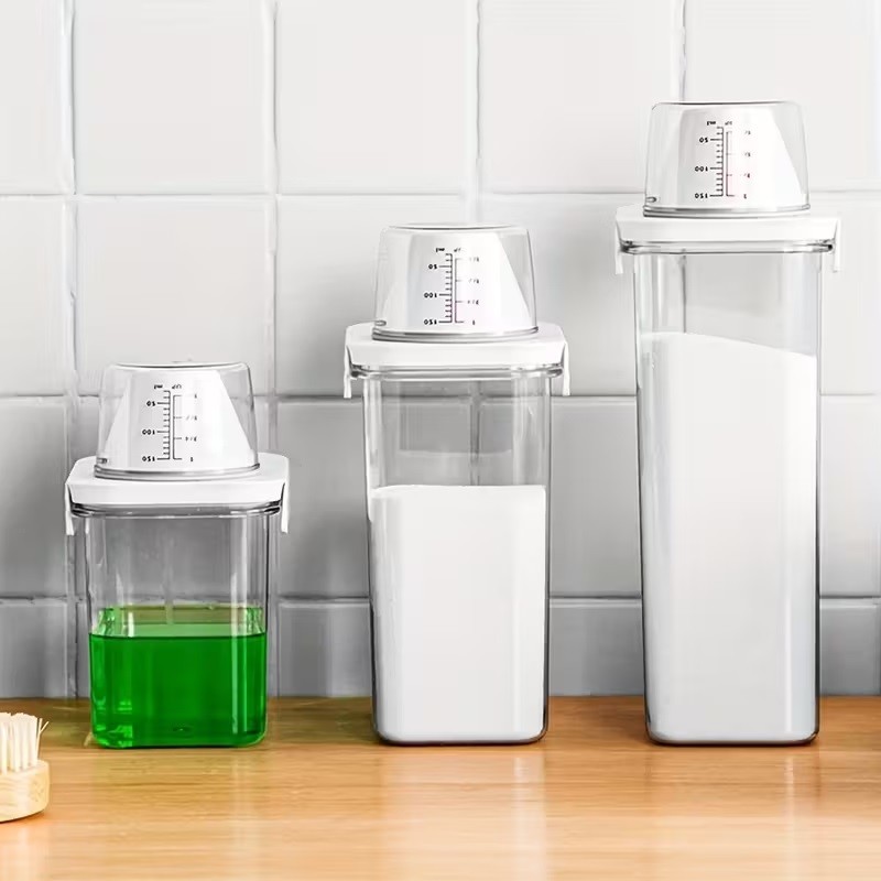 ✅ 3 mărimi diferite – 2300 ml, 1800 ml și 1100 ml, potrivite atât pentru detergent lichid, cât și pentru detergent pudră sau balsam.