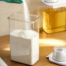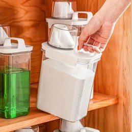 Păstrează-ți spălătoria organizată și modernă cu acest set de 3 recipiente, ideale pentru detergenți lichizi, pudră și balsam de rufe. Cu un design modern și capace etanșe cu dozator gradat, setul îți oferă o dozare precisă și un spațiu de depozitare ordonat.