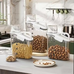 Organizează-ți bucătăria într-un mod eficient și elegant cu acest set de 3 recipiente ermetice gradate, ideale pentru depozitarea alimentelor uscate sau lichide.