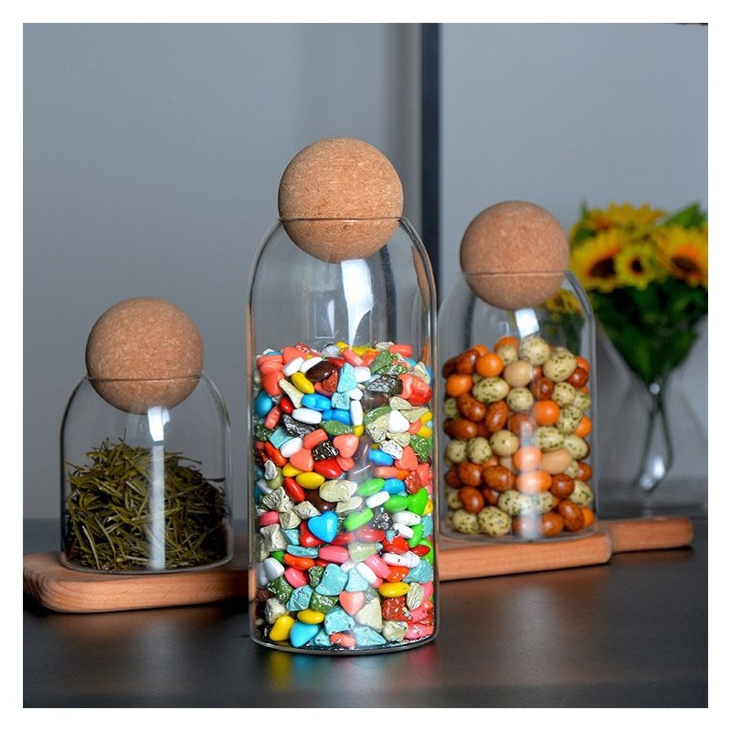 Sticla borosilicată este clară și rezistentă, iar capacele sferice din plută naturală asigură o etanșare eficientă, menținând prospețimea conținutului.