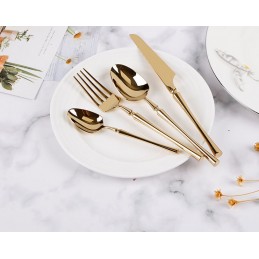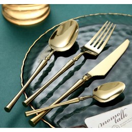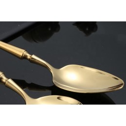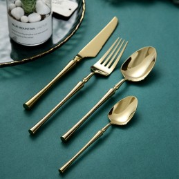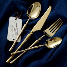 Tacâmurile au un finisaj spectaculos, cu aspect metalic auriu tip oglindă care adaugă savoare vizuală oricărui decor de masă.