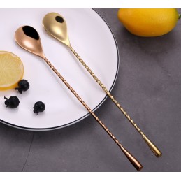 Această linguriță auriu roze pentru băuturi și cocktailuri, în stil japonez, este un accesoriu esențial pentru orice pasionat de mixologie, fie el profesionist sau amator.