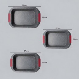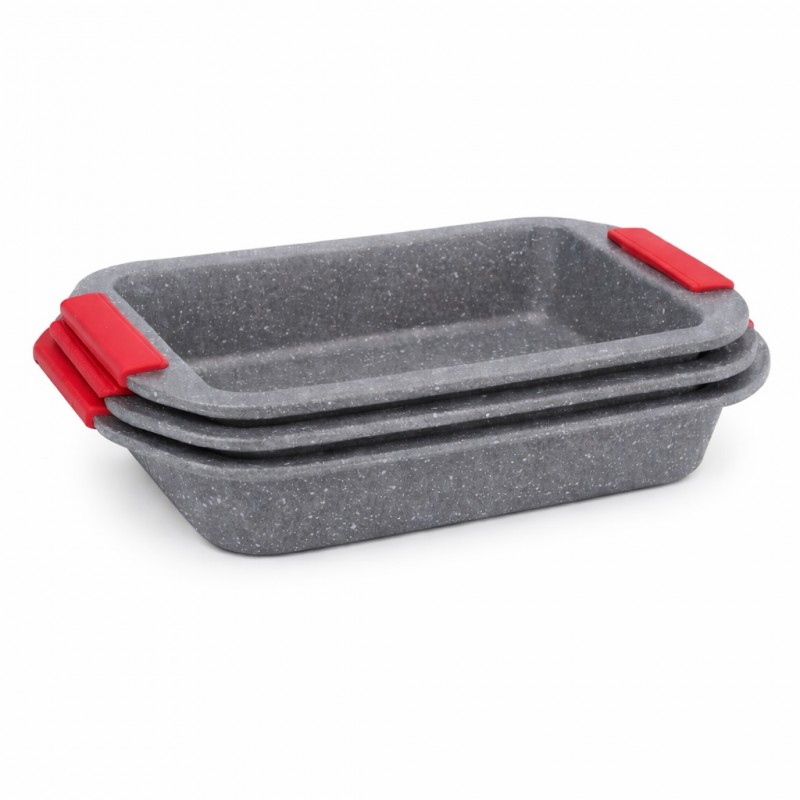 Set 3 Tăvi de Copt Granitate Platinum, Antiaderente , PFOA free Cu Mânere Silicon