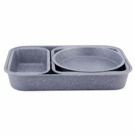 Set 3 Tăvi de Copt Granitate Platinum, Antiaderente , PFOA free Cu Mânere Silicon