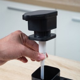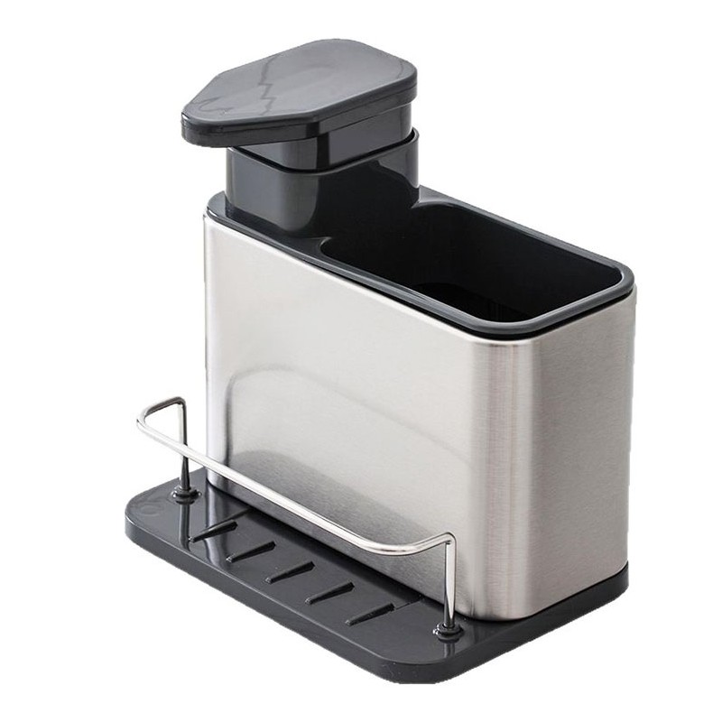 Acest dispenser modern, fabricat din oțel inoxidabil premium, îți oferă soluția perfectă pentru depozitarea detergentului, bureților și periilor de vase.