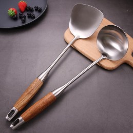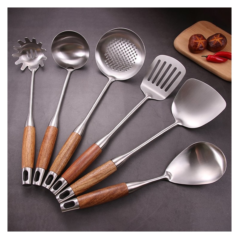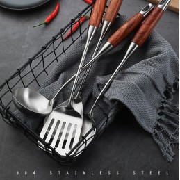Acest set de 6 ustensile combină rezistența inoxului 304 cu eleganța lemnului natural, oferind accesorii durabile, ergonomice și perfecte pentru orice bucătărie modernă.