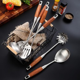 Set 6 Ustensile din Inox 304 cu Mânere din Lemn – Calitate Premium