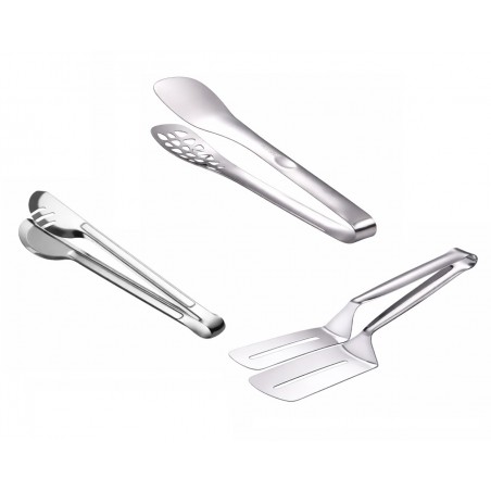 Alege un set de 3 clești din inox multifuncționali, ideali pentru gătit, servire și utilizare la grătar. Practici și rezistenți, acești clești îți oferă precizie și siguranță în manipularea alimentelor fierbinți.