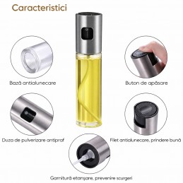 Controlează cantitatea de ulei folosită la fiecare preparat cu acest set de 2 pulverizatoare pentru ulei și oțet. Pulverizarea fină permite distribuirea uniformă a lichidului, reducând risipa și ajutând la prepararea unor mese mai sănătoase.