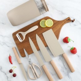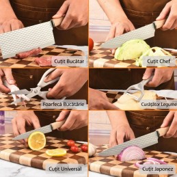 Set Profesional de Cuțite și Accesorii Bucătărie – 7 Piese Esențiale cu Suport Pliabil
