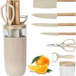Suportul inclus păstrează toate cuțitele în siguranță, organizate și la îndemână.