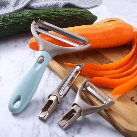 Cu acest curățător de legume 3 în 1, fiecare preparat devine mai simplu de realizat. Indiferent dacă vrei să cureți, să feliezi sau să tai julienne, ai totul într-un singur instrument compact și eficient.