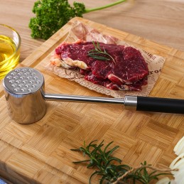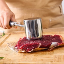 Ciocanul pentru carne din oțel inoxidabil este un accesoriu esențial în orice bucătărie. Conceput pentru a frăgezi eficient carnea, acesta ajută la pătrunderea uniformă a condimentelor și la gătirea rapidă și uniformă.