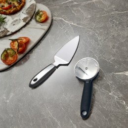 Descoperă setul 2 în 1 pentru pizza, creat special pentru iubitorii de preparate delicioase și servire fără efort. Cu roata de tăiere ultra-ascuțită și spatula practică, vei putea tăia și servi pizza rapid, precis și fără să strici toppingurile.